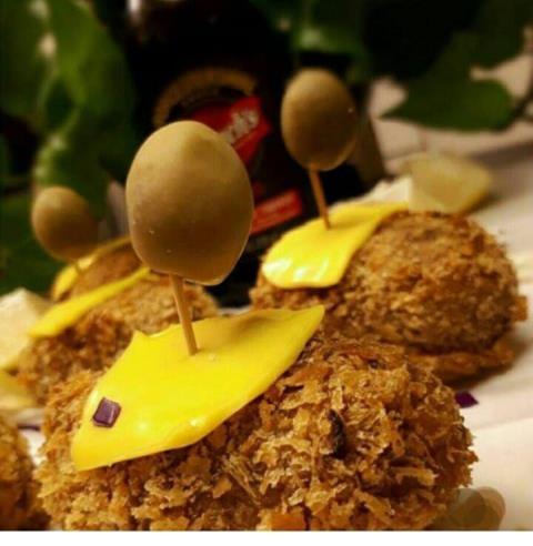 سه سوت سینه مرغو و پیاز و سیر و با گشنیز با بلندر میکس کردم با برنج خوشگلمون مخلوط کردم ادویه و نمک و تخم مرغ رو اضافه کرده و ورز دادم اندازه یه نارنگی تو دست باز کردم وسطش پنیر موزرلا گذاشتم خوب بستم و تو ارد سوخاری غلطوندم و تو روغن سرخ کردم.