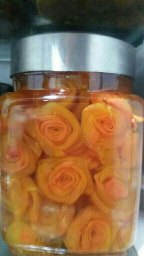 یه دستمال یا دم کنی روی ظرف قرار بدین تا وقتی که کاملا خنک بشه و عرق نکنه و وقتی خنک شد به آرومی نخ رو بکشید و گلهای هویج همون جور ثابت شکل خودشونو حفظ می کنن و باز نمیشن .توی شیشه که کاملا خشک و بدون چربی هست بریزید .