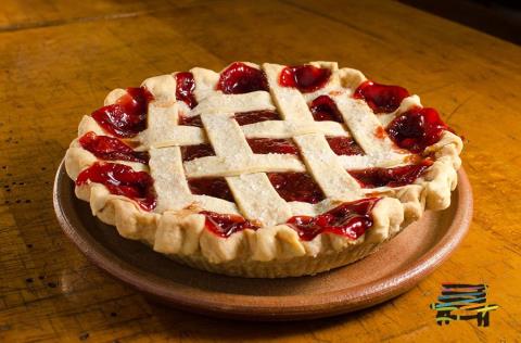 آرد، 1 قاشق غذاخوری شکر و 3/4 قاشق چای خوری نمک را داخل یک کاسه بزرگ مخلوط کنید. 225 گرم کره را اضافه کنید و به وسیله انگشتتان آن را ماساژ دهید سپس آب یخ به آن اضافه کنید و با چنگال هم بزنید. اگر خشک بود مقدار آب بیشتری به آن اضافه کنید. خمیر را گرد کنید و بعد به دو قسمت تقسیم کنید. هر تکه را به شکل یک توپ دربیاورید و بعد مثل دیسک صاف کنید و داخل پلاستیک بپیچید و به مدت 30 دقیقه داخل یخچال نگهدارید. فر را با دمای 220 درجه سانتیگراد (425 درجه فارنهایت) گرم کنید و قسمت پایین فر را آماده کنید. 225 گرم شکر و آرد ذرت و 1/4 قاشق چای خوری نمک را داخل یک کاسه متوسط مخلوط کنید و سپس با آلبالو مخلوط کنید و بعد آبلیمو و وانیل را اضافه کنید و کنار بگذارید. یک خمیر را روی سطح آرد ریخته ورز دهید و به شکل دایره 30 سانتیمتری دربیاورید و بعد به یک قالب 22.5 سانتیمتری انتقال دهید. 1.5 سانتیمتر از لبه خمیر را کات کنید. سپس به وسیله چاقو تیزی آن را به 10 تکه مثلثی دو سانتیمتری تقسیم کنید. مخلوط آلبالو را به خمیر انتقال دهید و در وسط آن قرار دهید و روی آن نقطه نقطه کره بگذارید و روی آن خمیر تکه شده را قرار دهید و لبه های آن را تا کنید. حال با فرچه مخصوص روی آن شیر بمالید و روی آن یک قاشق غذاخوری شکر پخش کنید. پای را به مدت 15 دقیقه داخل فر قرار دهید و دمای فر را به 190 درجه سانتیگراد (375 درجه فارنهایت) کاهش دهید. لبه های آن را با فویل بپوشانید و به مدت یک ساعت دیگر داخل فر قرار دهید. بعد از خنک شدن با بستنی وانیلی سرو کنید.