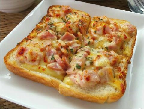 روی نان تست مقداری کره اب شده بریزید و مواد را روی نان ریخته و روی آن پنیر رنده شده بریزید.