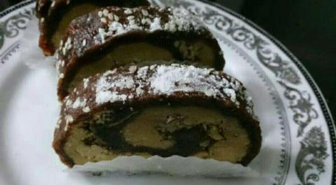 ۷- دانه دانه رولت ها رو داخل سفیده تخم مرغ می زنیم (می اندازیم و در می آوریم که همه طرفش آغشته به سفیده تخم مرغ بشه) بعد داخل دارچین و شکر می غلطانیم و توی سینی فر که کف آن رو کاغذ قنادی گذاشتیم می چینیم.