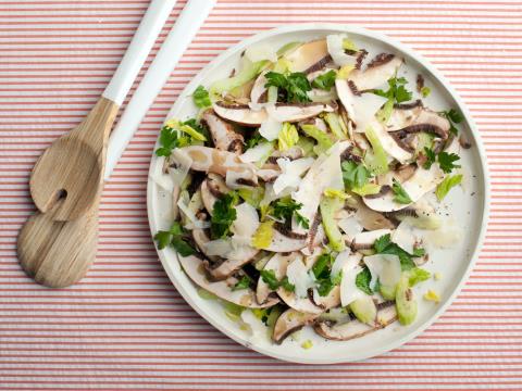 ابتدا قارچ و پیازچه را خرد کرده و با ذرت، نخودفرنگی و جعفری مخلوط میکنیم. سپس به آن کمی روغن زیتون، نمک و فلفل اضافه و با گوجهفرنگی، خیار و ساقه کرفس تزئین میکنیم.